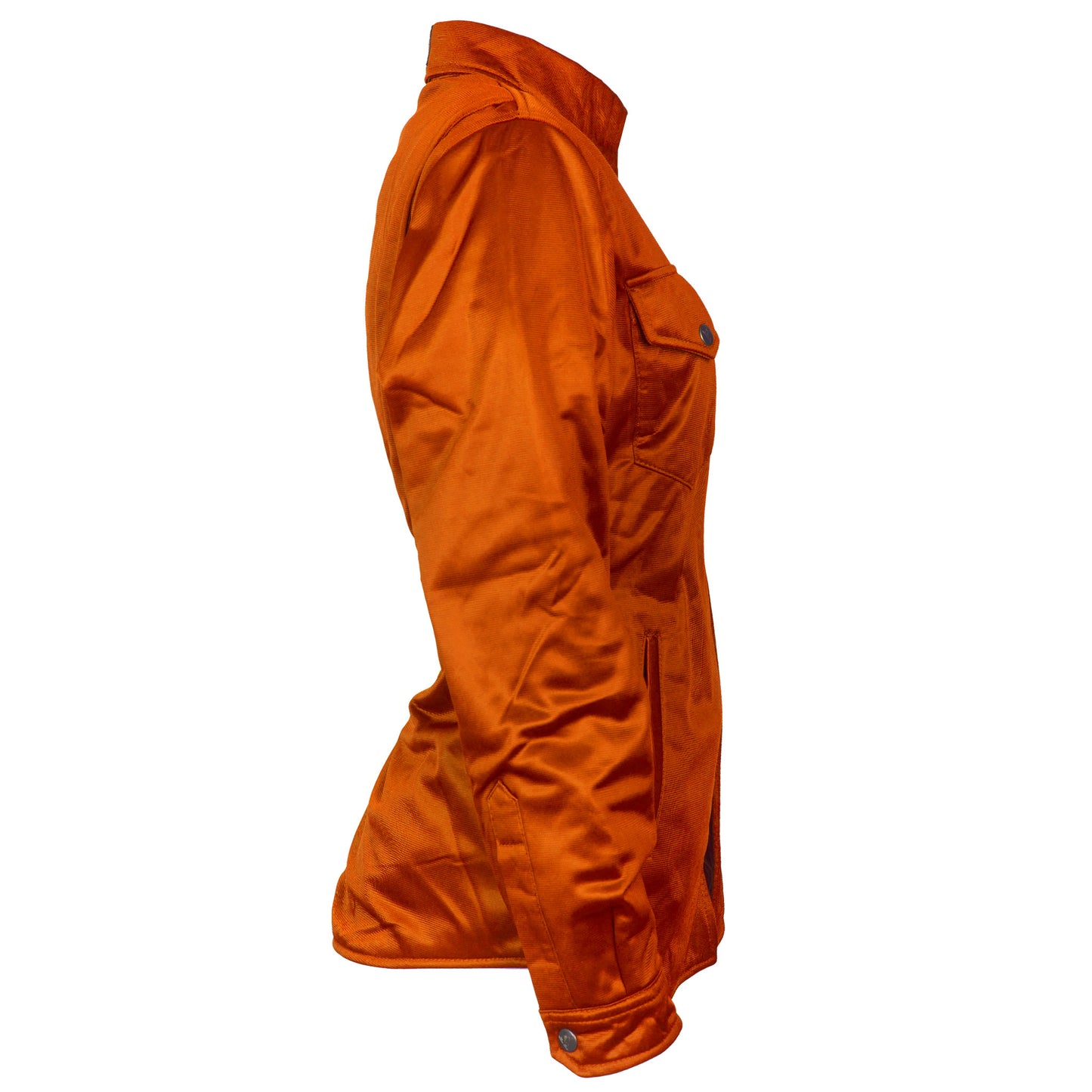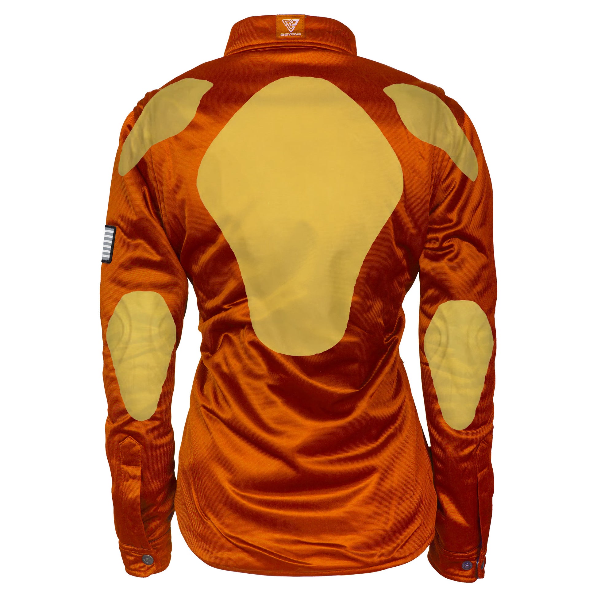 Stand out from the crowd with the Women's Orange Solid Ultra Protective Shirt with Level 1 pads included. Beyond Riders ensures you're not just safe but also stylish, whether navigating cityscapes or serene landscapes. This shirt combines vibrant aesthetics with the highest level of motorcycle protection, tailored for those who value visibility and safety on their journeys with personal electric vehicles.
