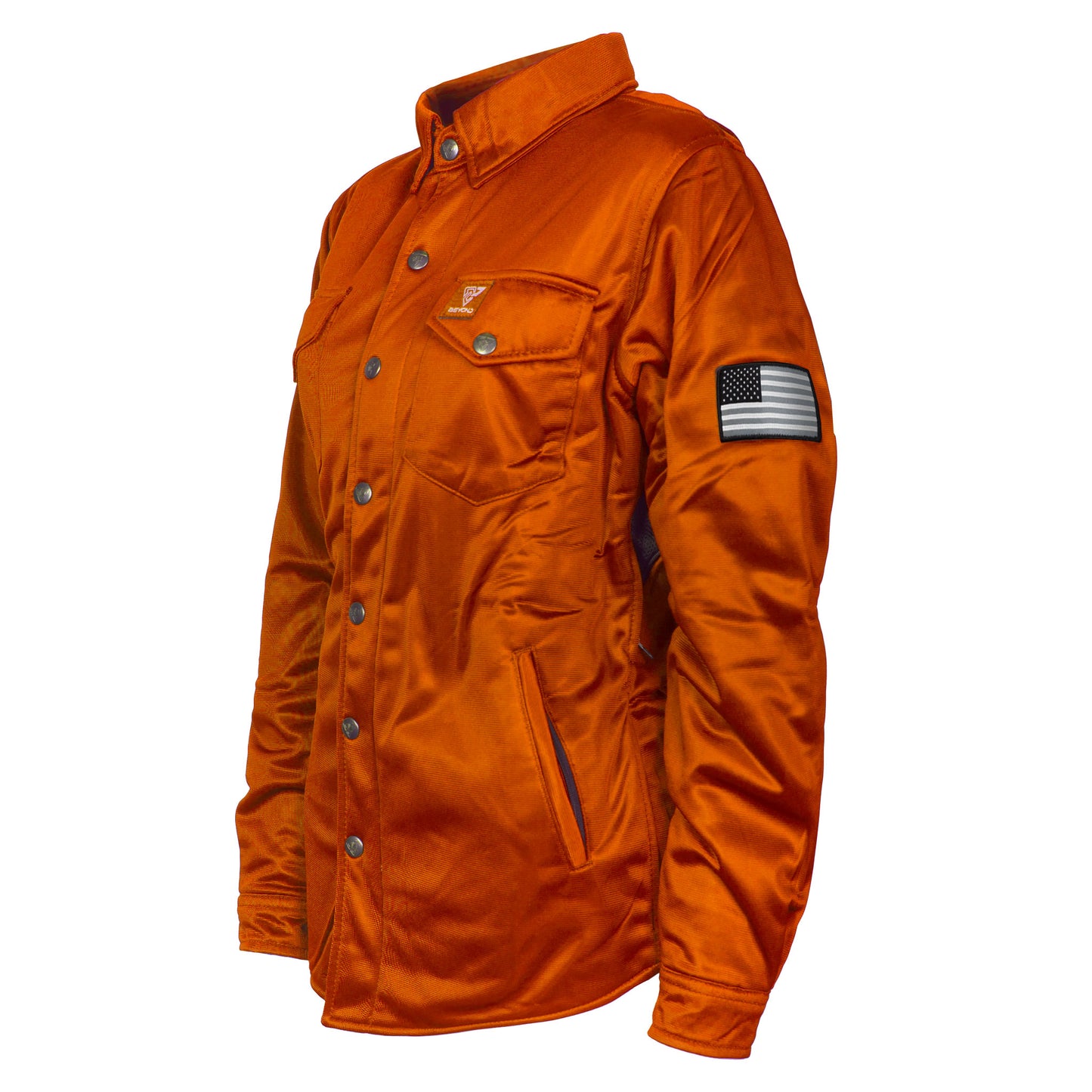 Beyond Riders Orange Solid Ultra Protective Shirts with a full set of Level 1 pads and additional chest pads included, made from breathable fabric! This stylish and comfortable lightweight button-up shirt provides riders with essential protection. The revolutionary design allows for maximum airflow that keeps your body cool even during the toughest of rides.