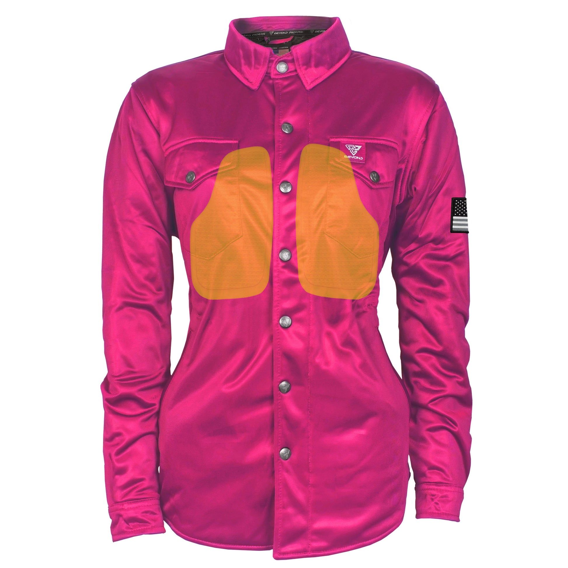Beyond Riders Pink Solid Ultra Protective Shirts with a full set of Level 1 pads and additional chest pads included, made from breathable fabric! This stylish and comfortable lightweight button-up shirt provides riders with essential protection. The revolutionary design allows for maximum airflow that keeps your body cool even during the toughest of rides.