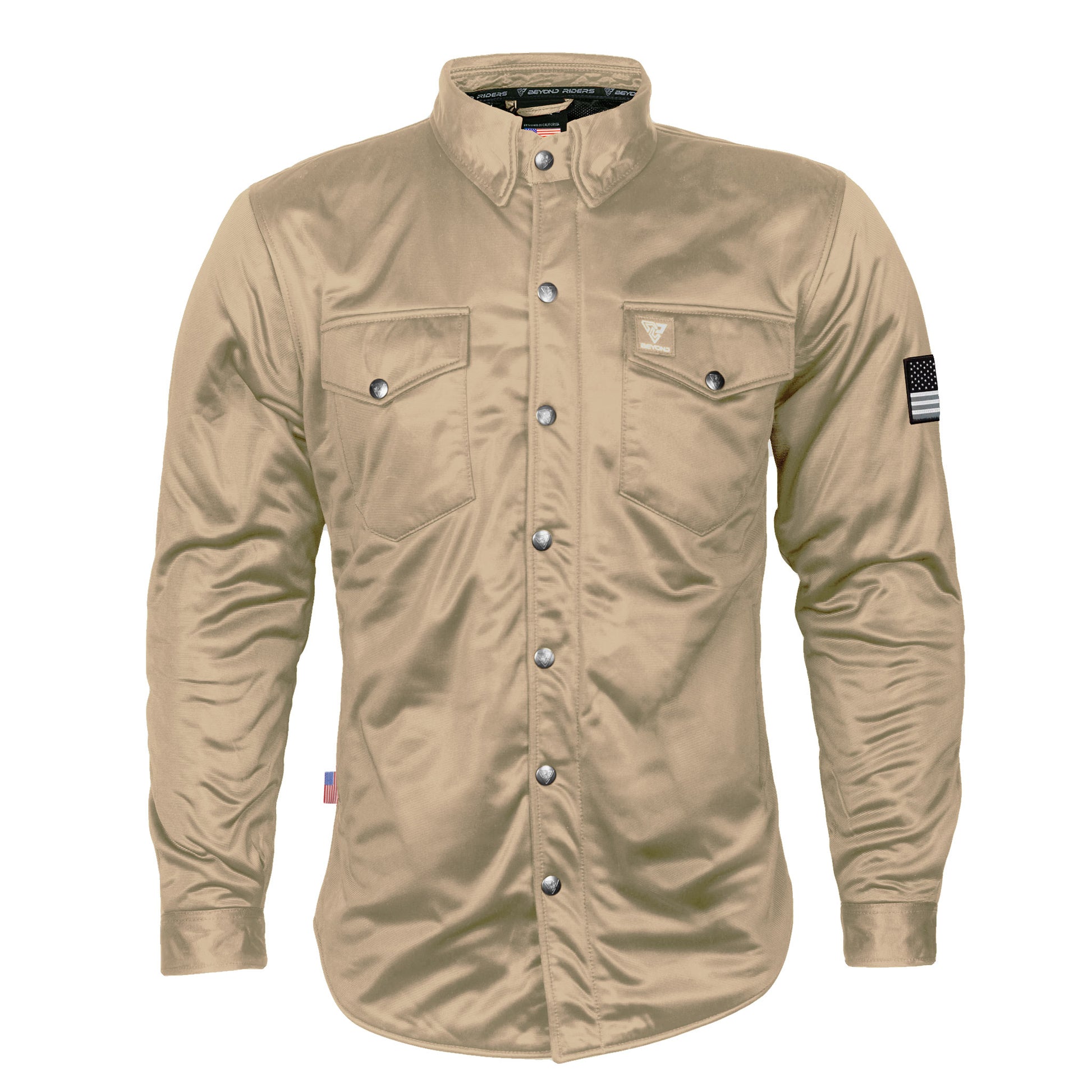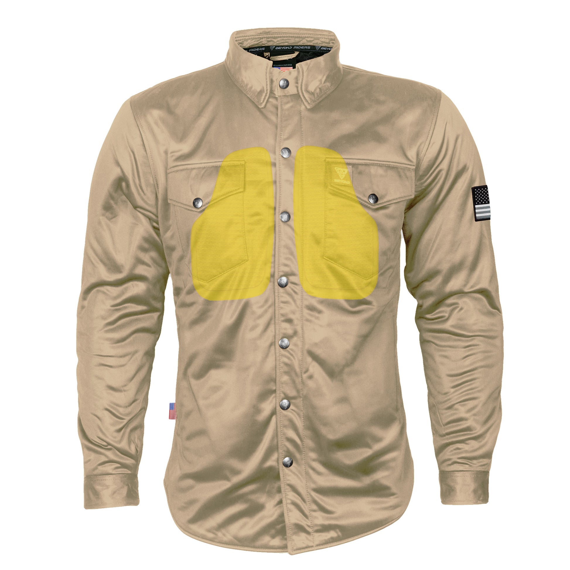 Introducing the Men's Ultra Protective Shirt in Khaki Solid with Pads, another exemplary piece from Beyond Riders. Tailored for the modern urban trailblazer, this shirt offers a sleek design coupled with essential safety features. With Level 1 pads included, it ensures you remain protected and stylish on all your rides. Navigate the city with ease and confidence, knowing your attire offers the best in both fashion and defense.