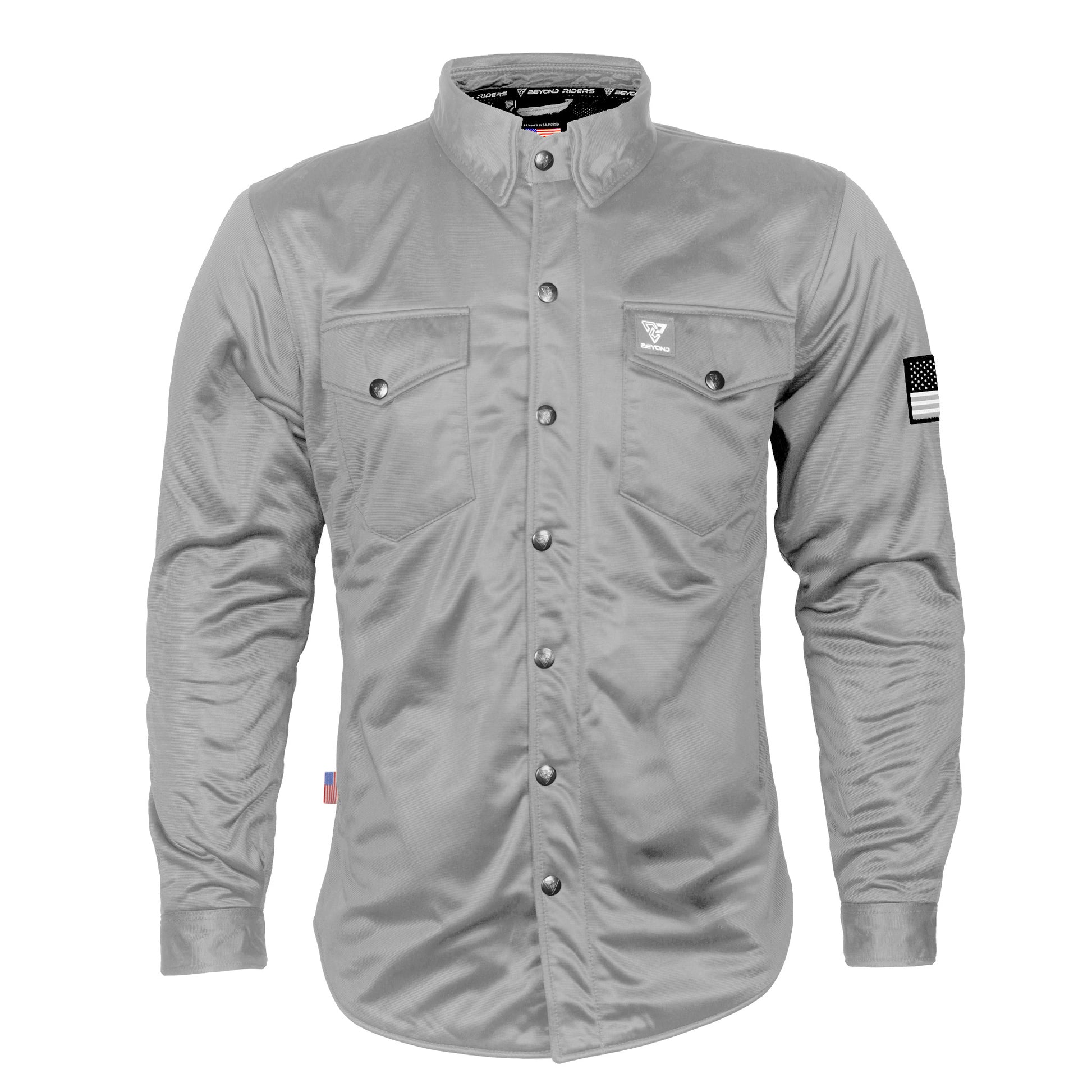 Introducing Beyond Riders' Men's Ultra Protective Shirt in Light Gray Solid. Designed for the stylish urban rider, this shirt seamlessly combines safety and fashion. Outfitted with Level 1 pads, it provides exceptional protection without compromising on style. Ride confidently through the city, knowing you're equipped with the perfect balance of form and function.