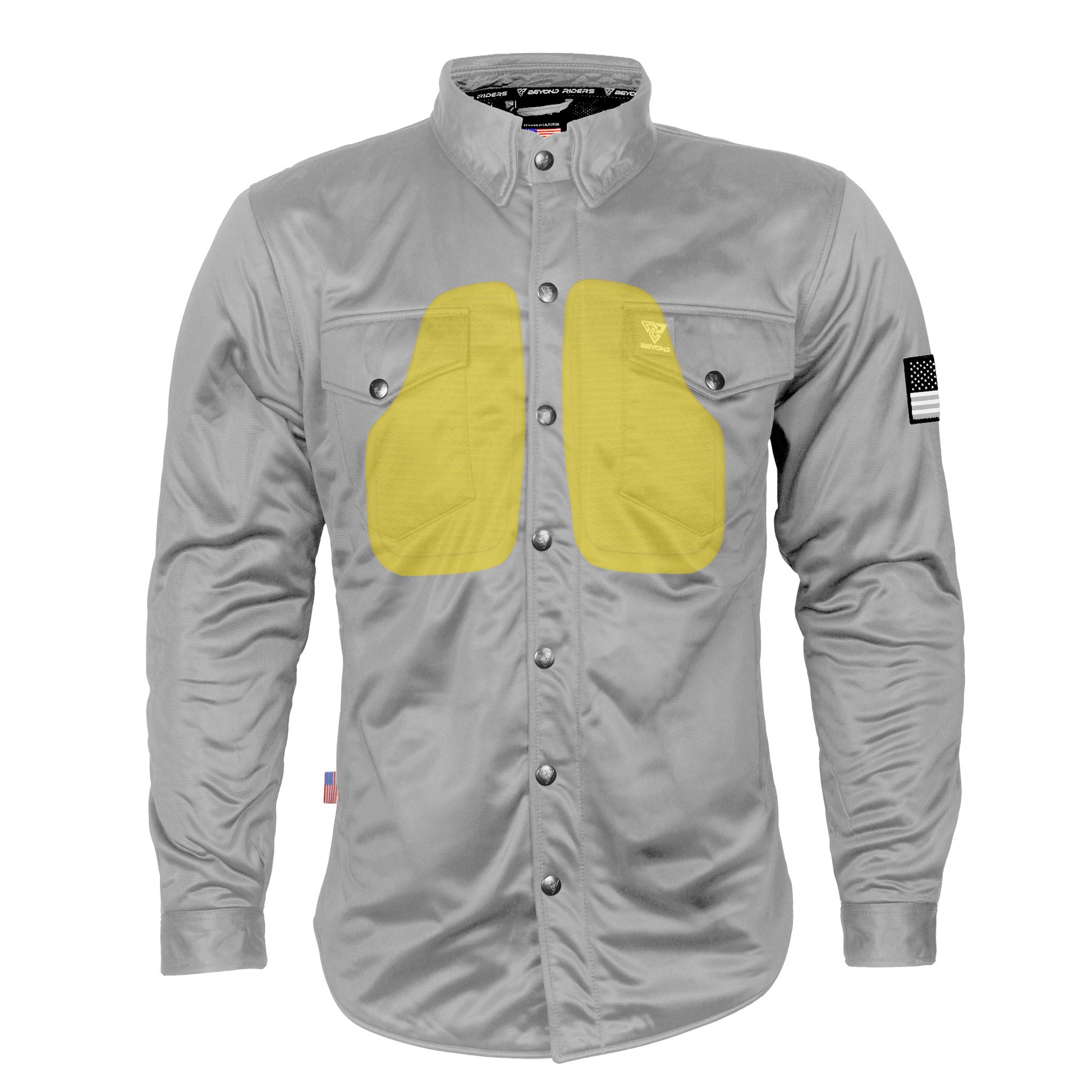 Beyond Riders Light Gray Solid Ultra Protective Shirts with a full set of Level 1 pads and additional chest pads included are made from breathable fabric and have been designed for adventurous riders! This stylish and comfortable lightweight button-up shirt provides riders with essential protection. The revolutionary design allows for maximum airflow that keeps your body cool even during the most challenging rides.