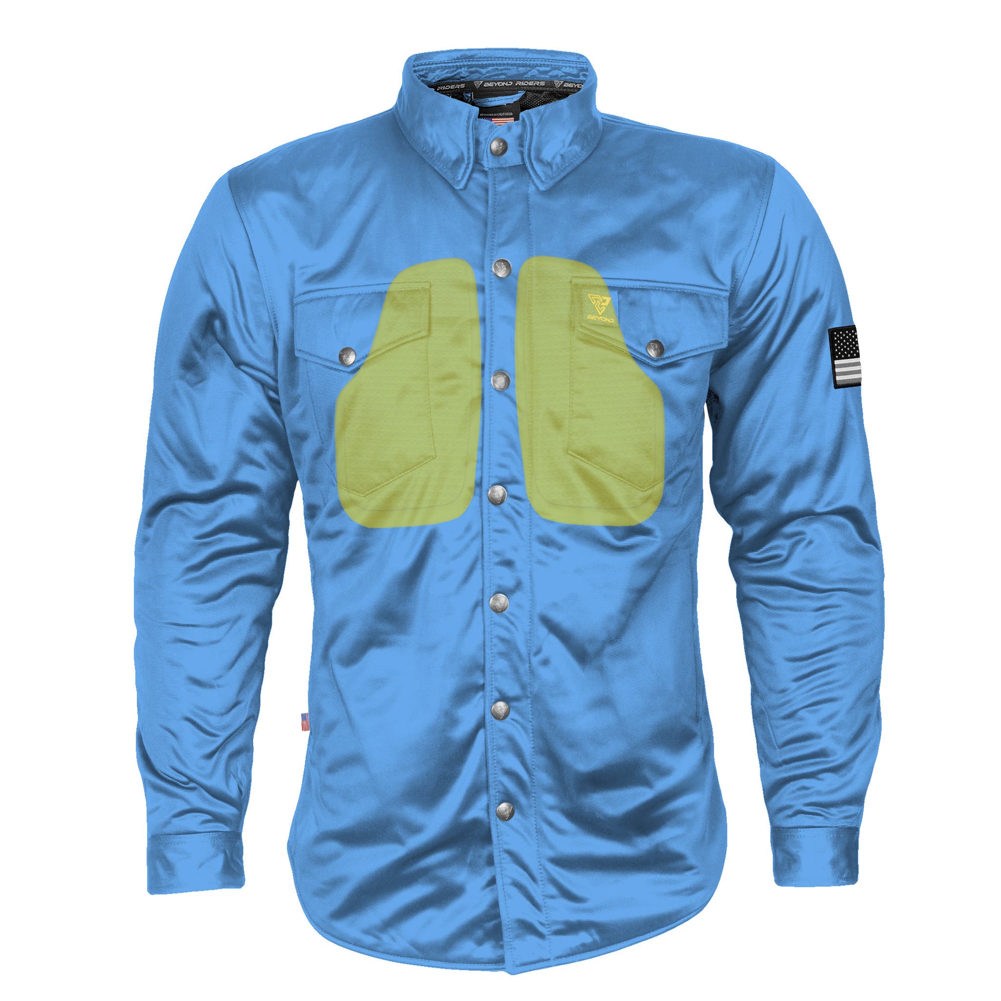 Beyond Riders Sky Blue Solid Ultra Protective Shirts with a full set of Level 1 pads and additional chest pads included are made from breathable fabric and have been designed for adventurous riders! This stylish and comfortable lightweight button-up shirt provides riders with essential protection. The revolutionary design allows for maximum airflow that keeps your body cool even during the most challenging rides.
