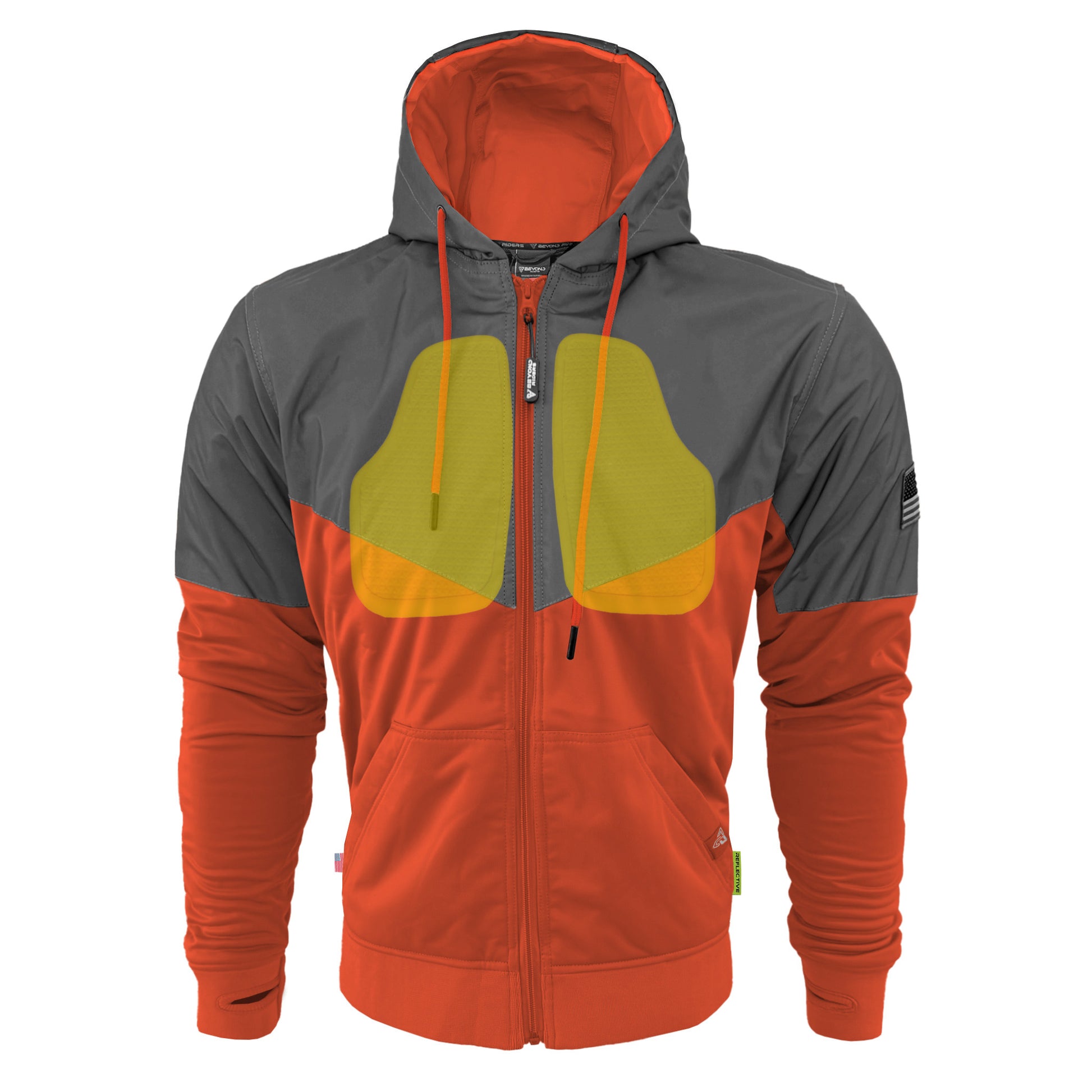 Step up your ride. Claim the road with confidence.Order your Ultra Orange & Black Reflective Hoodie today and experience the pinnacle of protective riding gear.