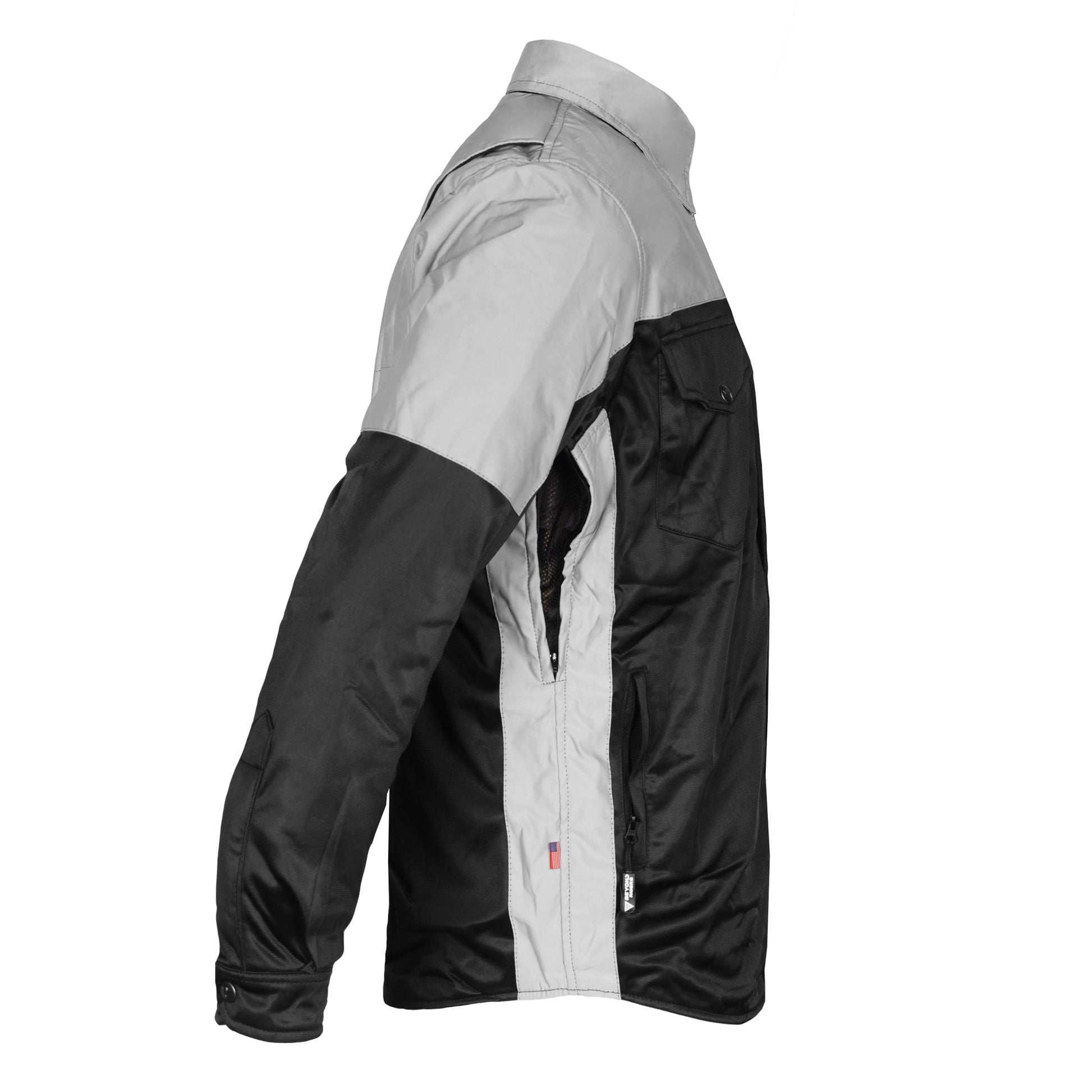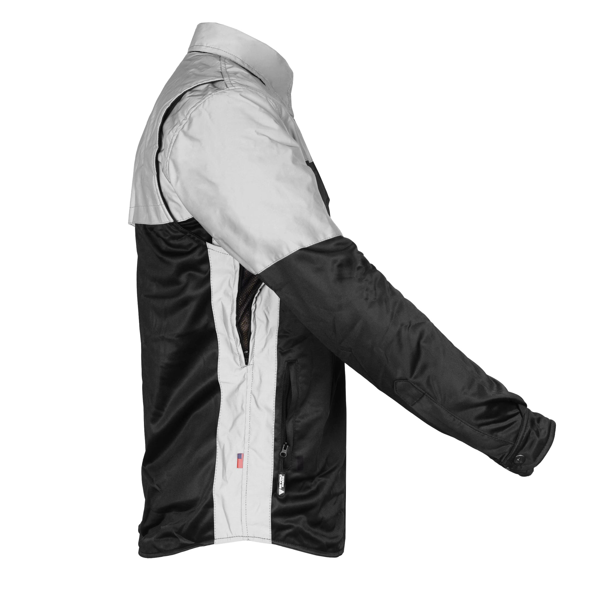 The upper section of our shirt is designed with high-visibility Silver reflective material.