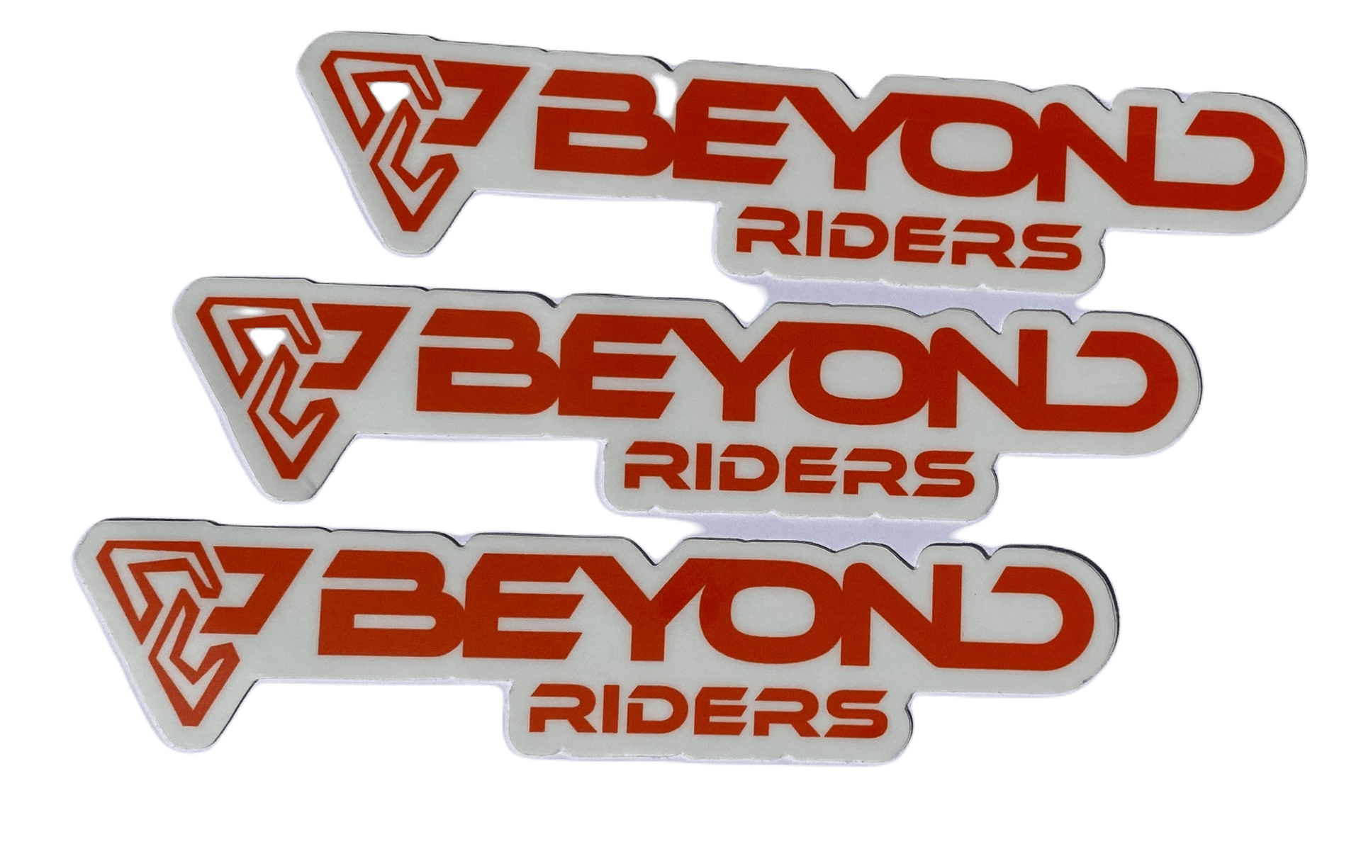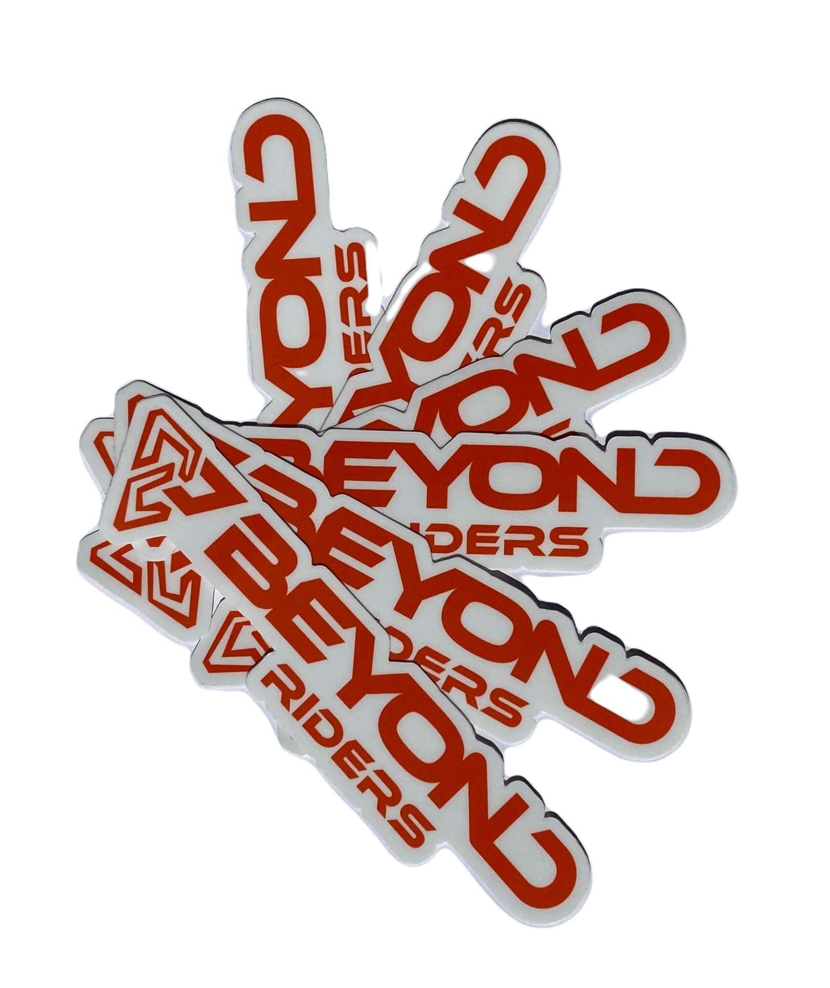 Get a sticker with the official Beyond Riders logo, orange on white background.